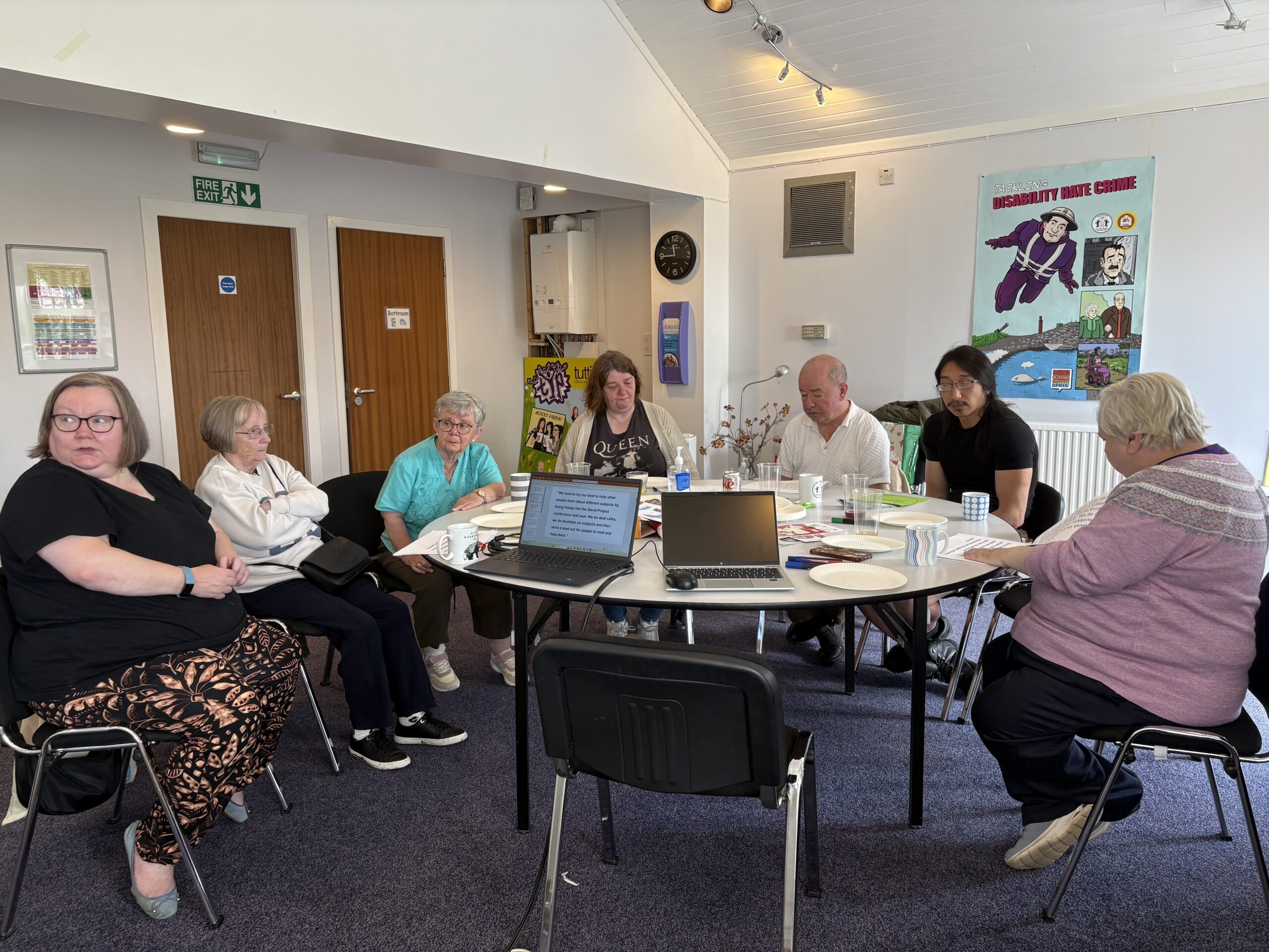 Photos of IncludeAge’s The Discovery Group Community Advisory Group (CAG). The Discovery Group CAG focuses on Learning Disabilities and is made up of third sector stakeholders and those with lived experiences relevant to the project.